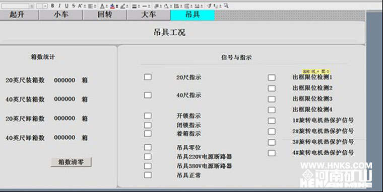 另外該起重機(jī)采用了先進(jìn)的自動控制系統(tǒng),實(shí)現(xiàn)了無人化操作功能,如自動尋箱、自動定位、遠(yuǎn)程監(jiān)控、數(shù)據(jù)實(shí)時(shí)傳輸?shù)?。起重機(jī)還配備有專用“黑匣子”,對各個(gè)部位故障快速診斷,能以直觀的方式讓操作者了解起重機(jī)的“健康情況”。為客戶管理貨場提供了解決方案和人性化的操作體驗(yàn),在幫助屏幕上附帶了一個(gè)專家系統(tǒng),使得整機(jī)反饋能縮小到具體的元件、聯(lián)鎖裝置及開關(guān),并為這一系列數(shù)據(jù)建立了一個(gè)數(shù)據(jù)庫,為解決問題提供幫助。